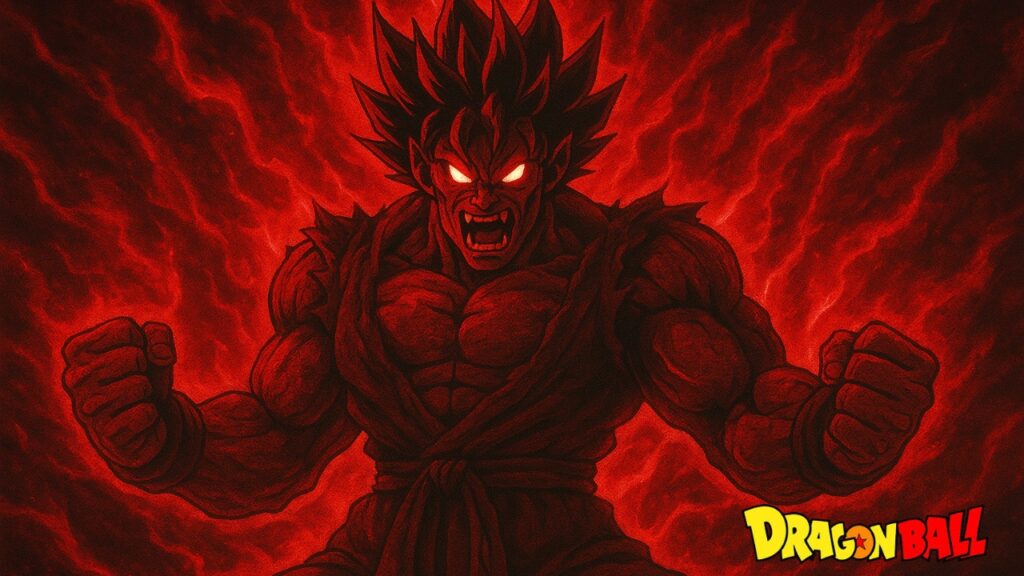 While the gods and legends clash on one side, another fight breaks out between Goten and Asura. Goten is already in Super Saiyan God form with bright red hair. Asura, known for his boundless rage, is foaming from his mouth. He throws punches that explode the ground like bombs.